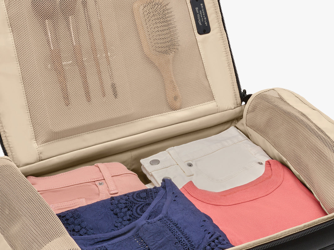 - Clothes stay beautifully crisp with our revolutionary Outsider® handle design — mounted on the suitcase exterior for a smooth, flat packing surface that reduces wrinkling.