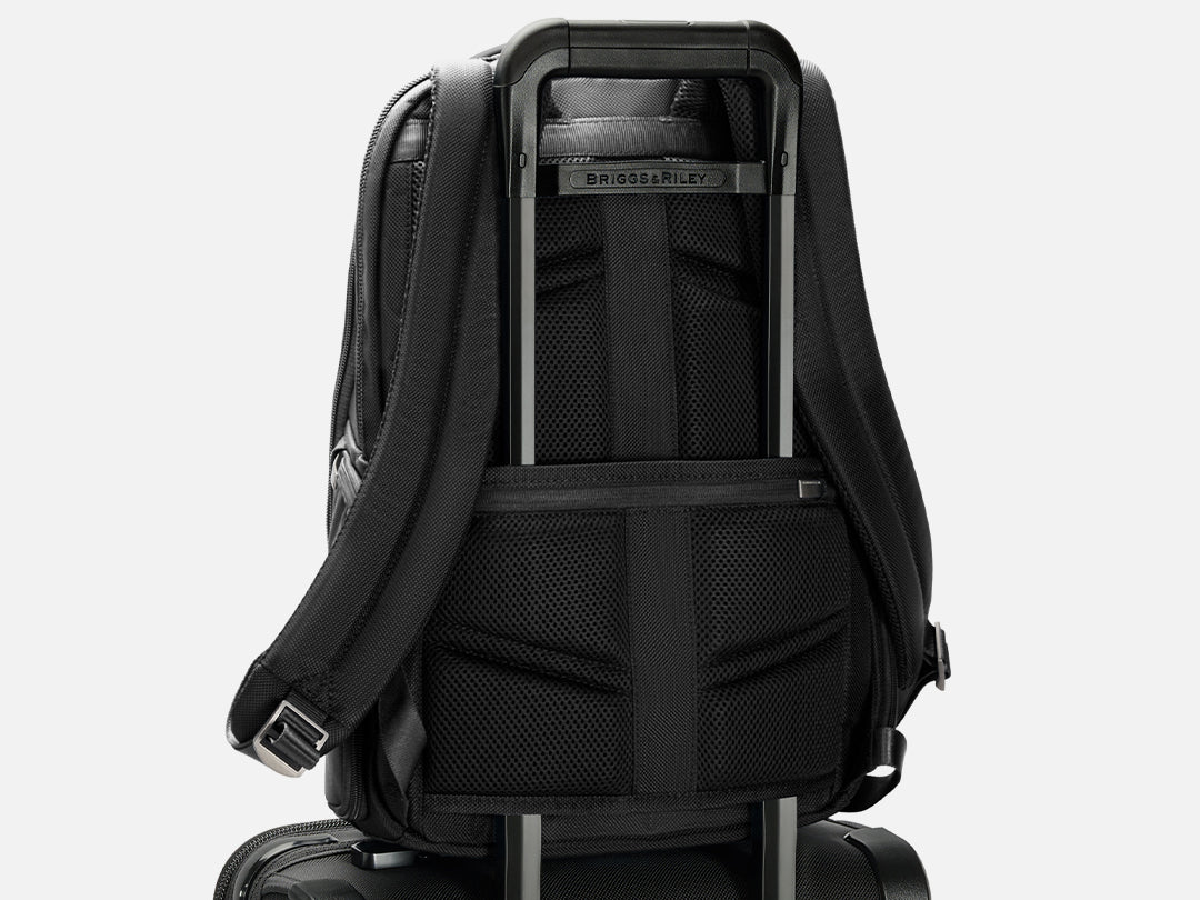 - Slip-through back panel allows bag to slide over any Briggs & Riley Outsider handle, comfortably transporting two bags as one.