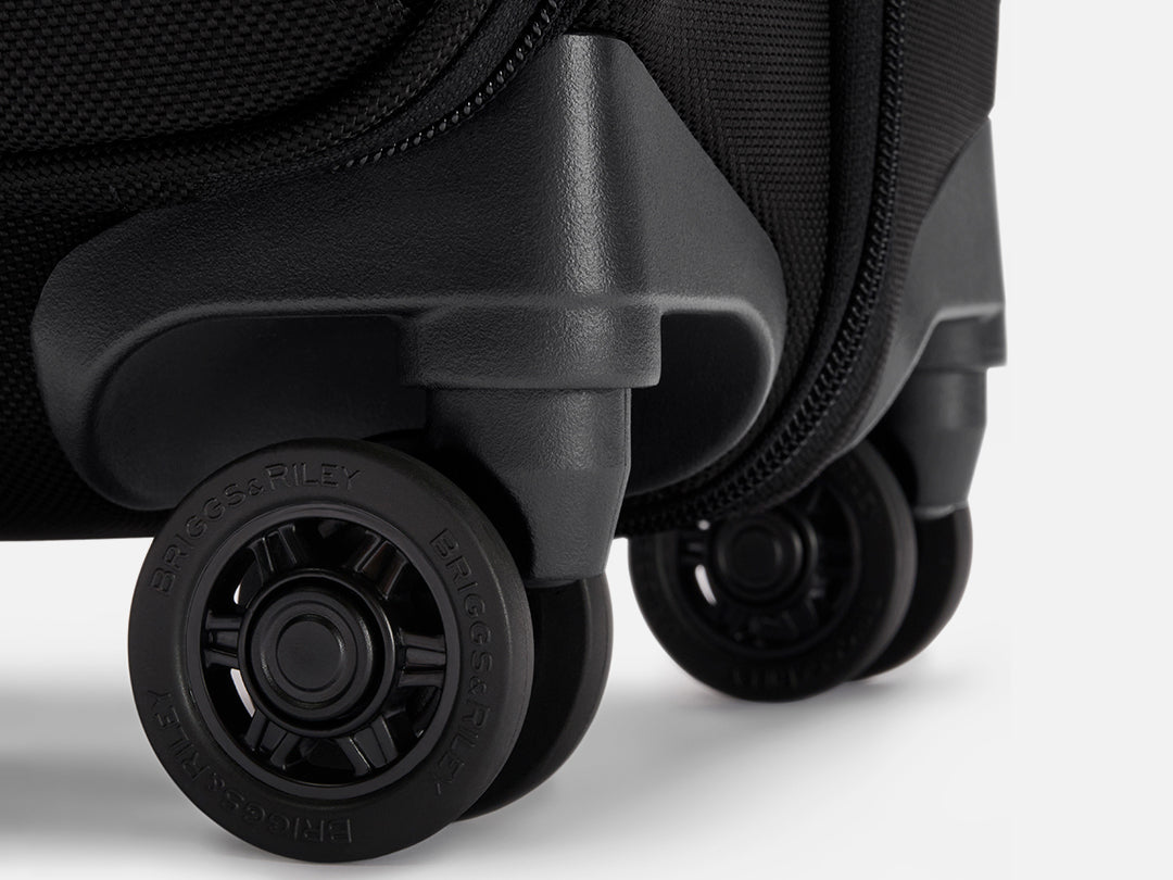 - Proprietary shock absorbing spinner wheels offer 360° maneuverability and smooth quiet gliding for effortless navigation.