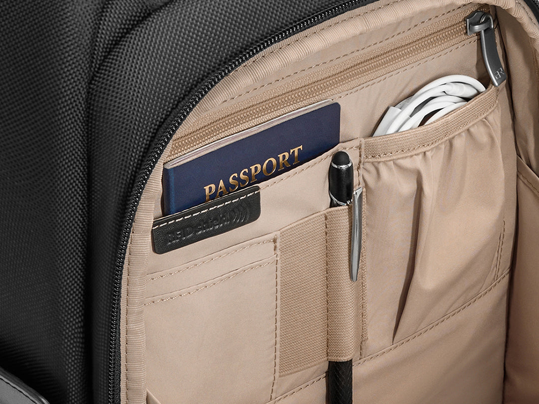 - Front pocket equipped with organisation and a RFID shielding to secure your personal data.