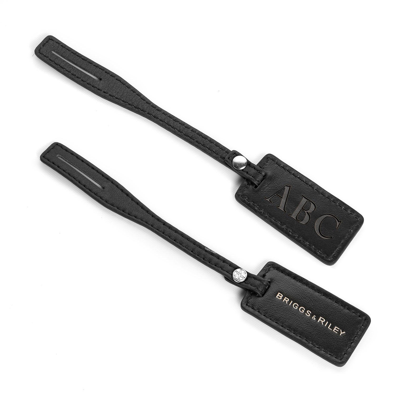 - Add the classic elegance of personalization to your luggage with a custom monogrammed leather fob.