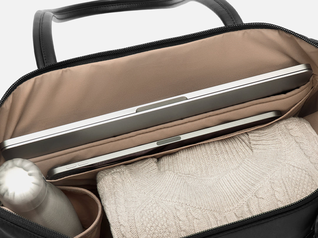 Move two bags as one for effortless one-handed transit on the go — we’ve designed our slip-through back panel to slide easily over any luggage handle.