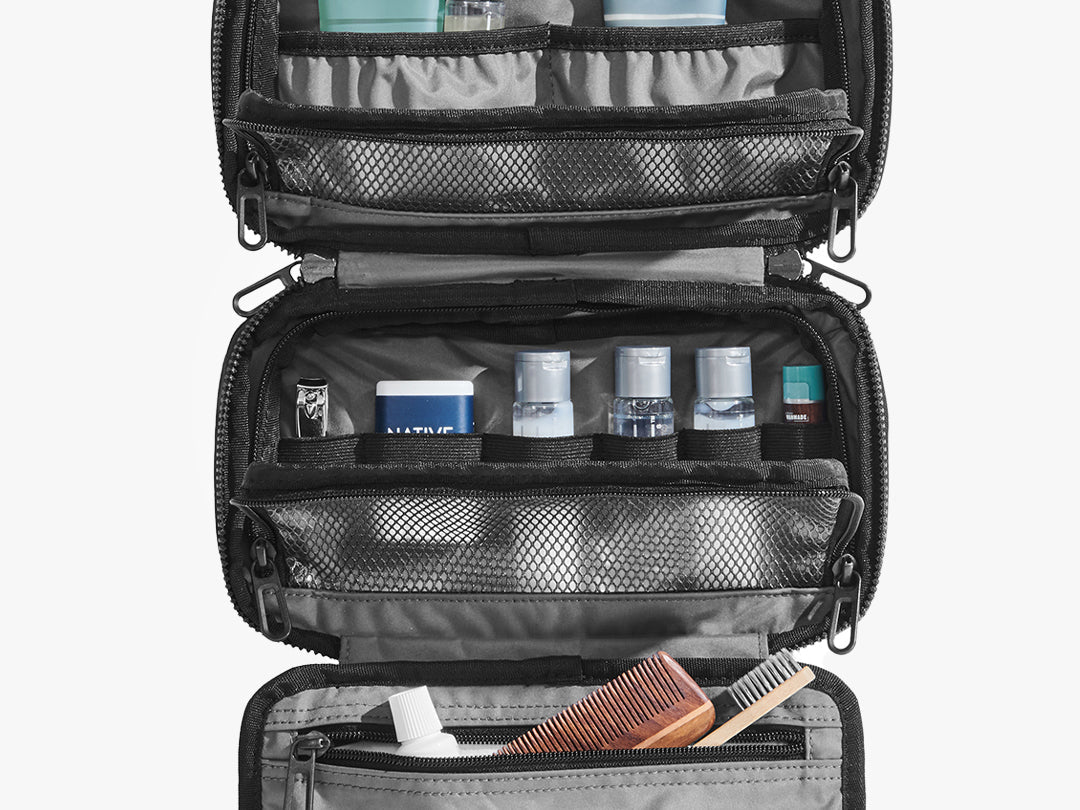 Keep toiletries organized and tidy with two PVC-lined pockets that are easy to wipe clean. The mesh facing lets you see what's inside the pocket for easy access.